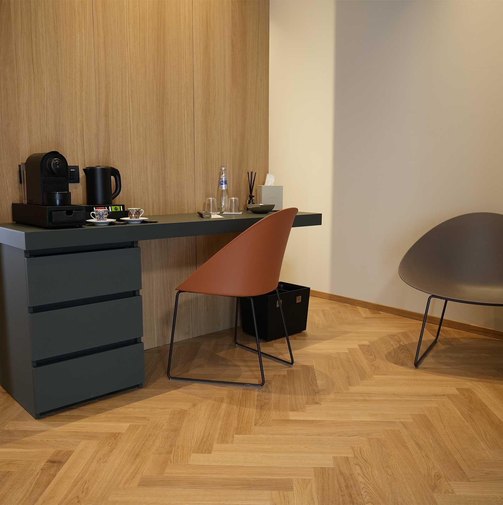 Più ampia e luminosa, la Camera Deluxe offre un’esperienza di soggiorno superiore. Linee moderne, materiali di qualità e un’atmosfera curata nei dettagli creano un ambiente elegante e rilassante, ideale per chi cerca comfort, stile e tranquillità durante il soggiorno.